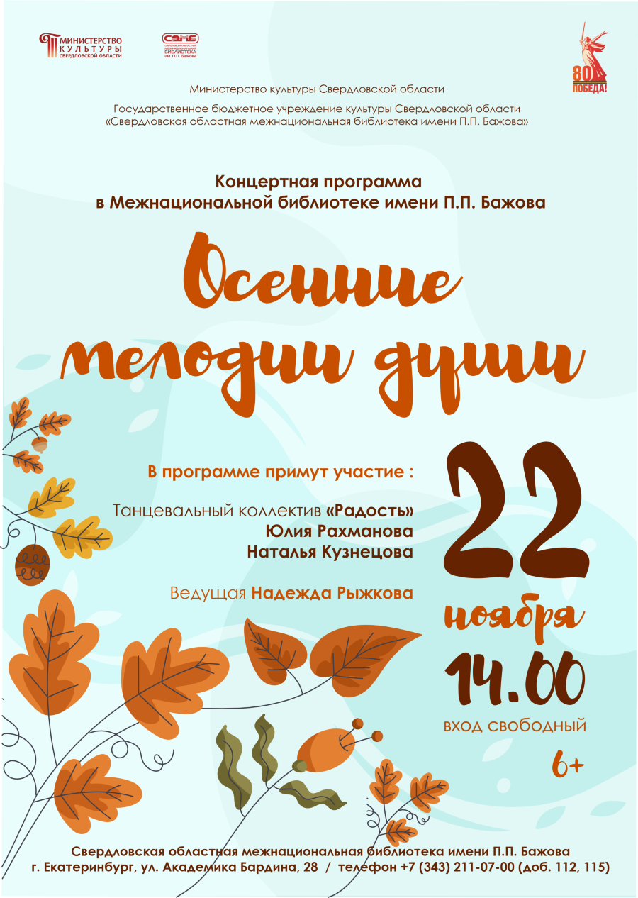 22 ноября в 14:00 Межнациональная библиотека распахнет свои двери, чтобы подарить вам неповторимую атмосферу на нашем особенном вечере – «Осенние мелодии души».