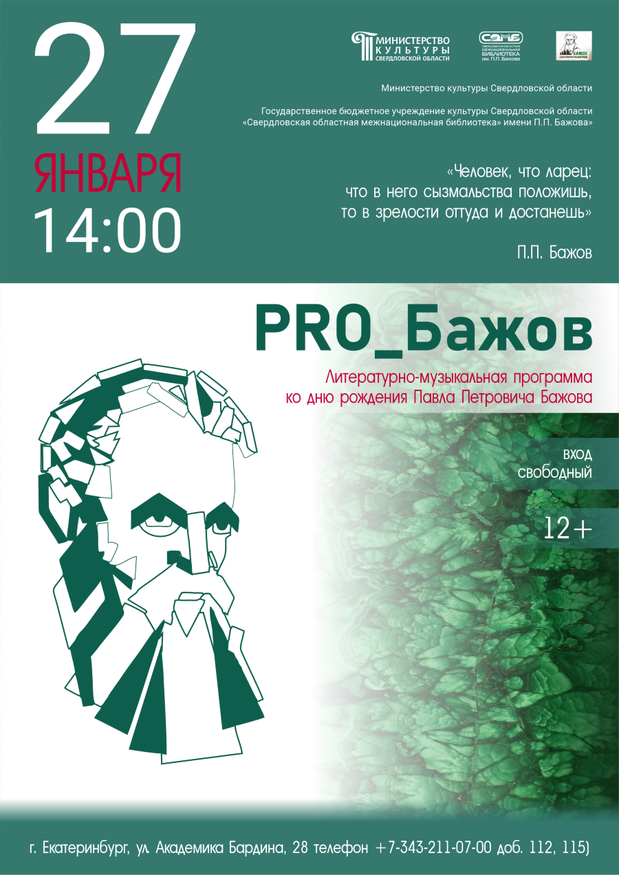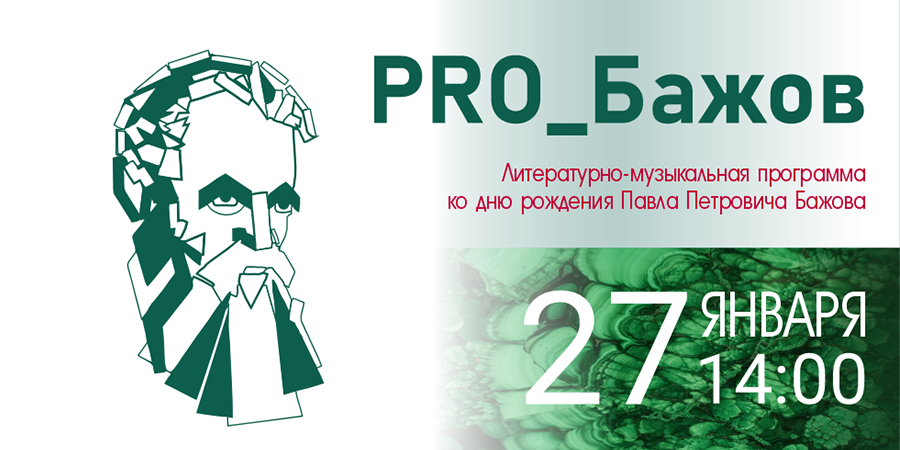 27 января в 14.00 состоится заседание литературно-музыкальной гостиной, посвящённое 147 годовщине со дня рождения П.П. Бажова.