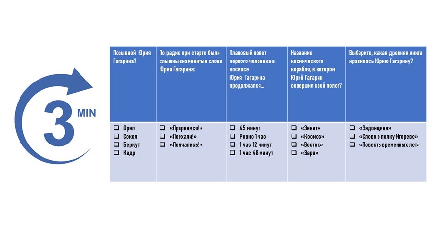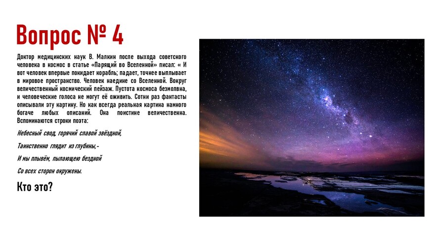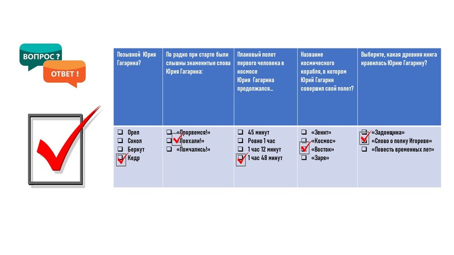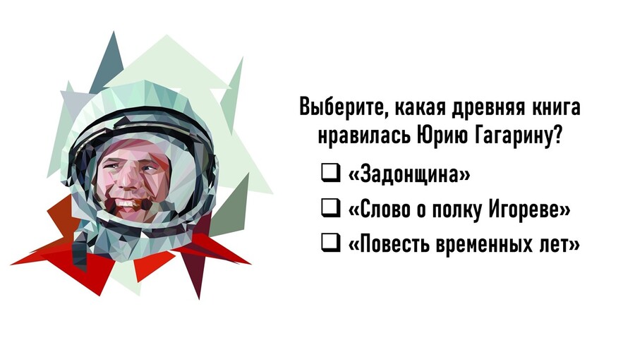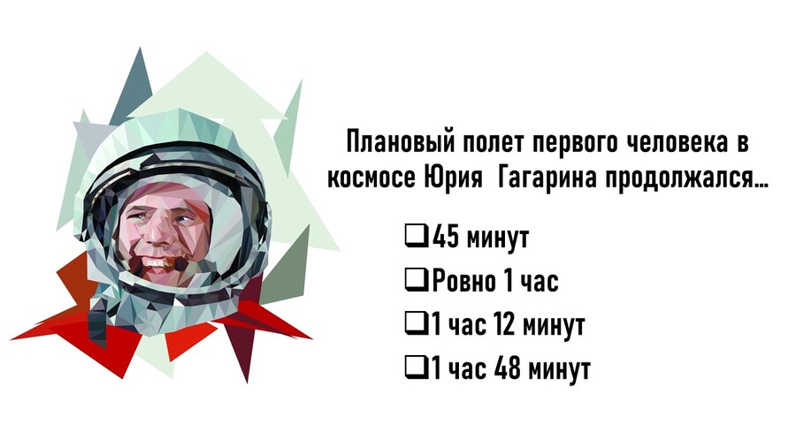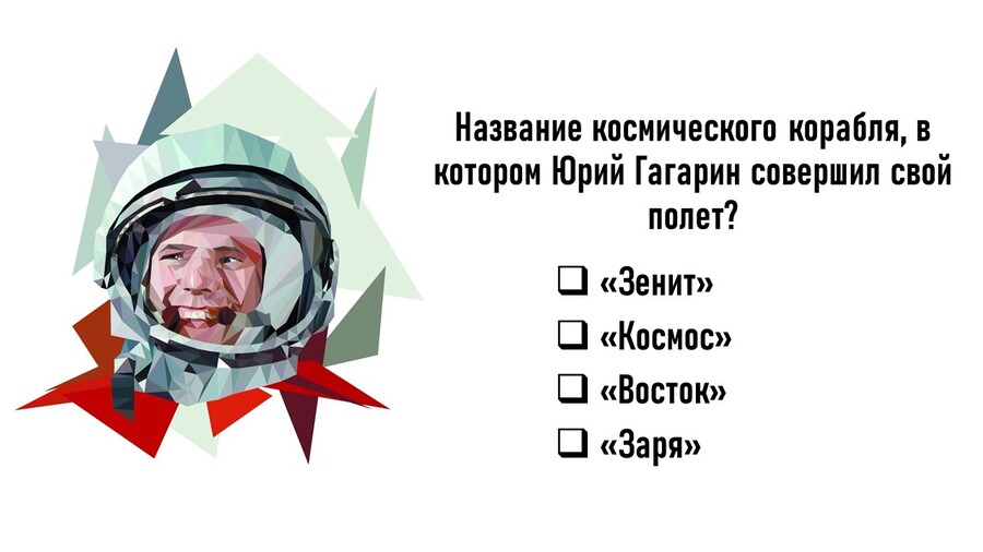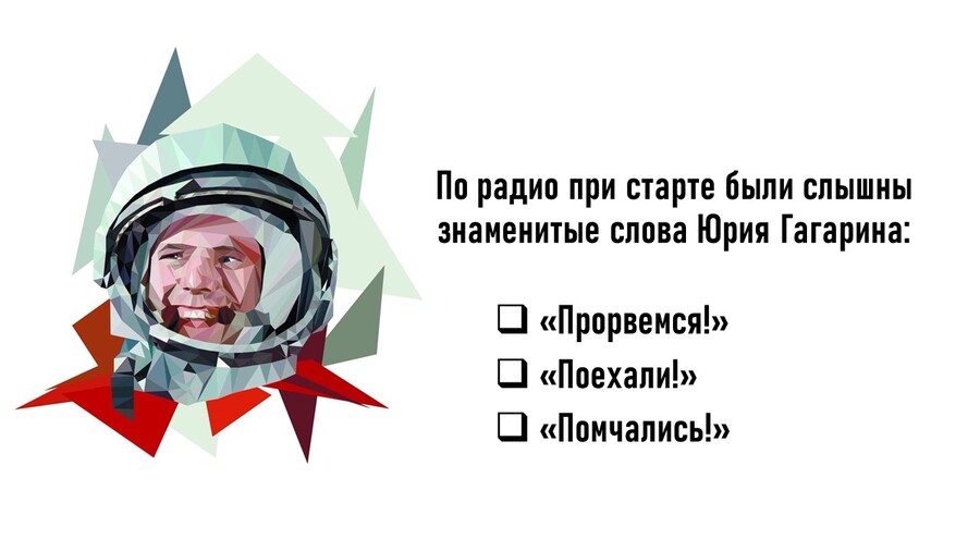 Перед вами вопросы о космосе, истории покорения Вселенной и первом полёте Юрия Гагарина.