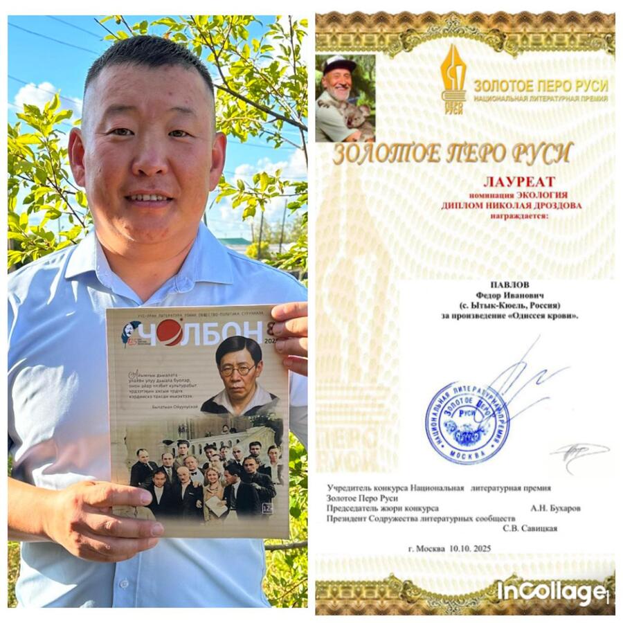 Писатель из Якутии Фёдор Павлов (победитель конкурса «ЭтноПеро» 2024 года) стал лауреатом национальной литературной премии «Золотое перо Руси». Его произведение «Одиссея крови» отмечено дипломом имени Николая Дроздова.